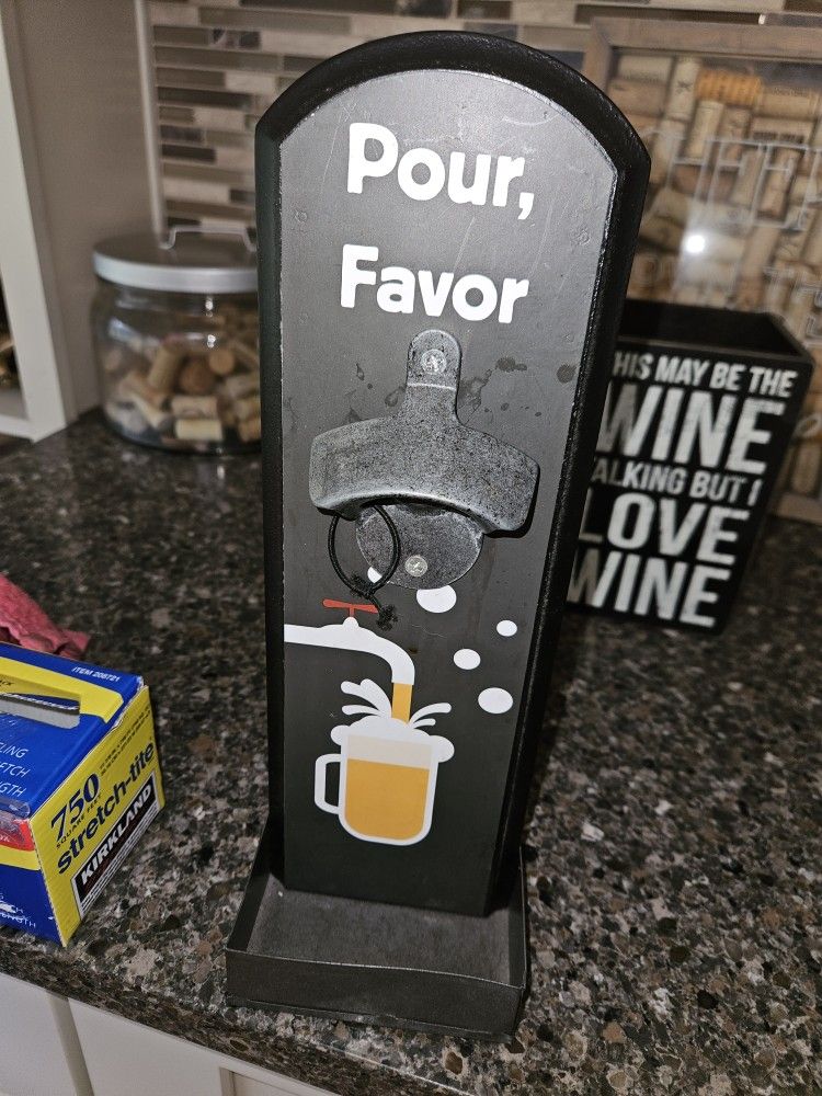 Would look cool in someone's man cave or on a deck for entertaining. Can sit on surface or be mounted. Only used to open 4 beer bottles as I do not drink beer. I'm throwing in a couple tall beer glasses/stein! Meet up or porch pick up.