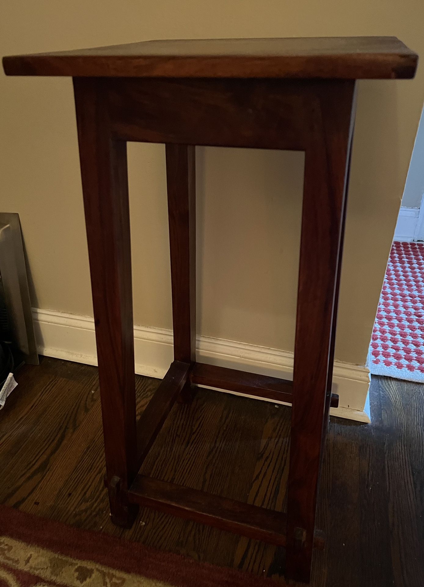 Height: 30 inches Width: 14.25 inches Length: 14.25 inches Nice sturdy bar stool / kitchen island chair