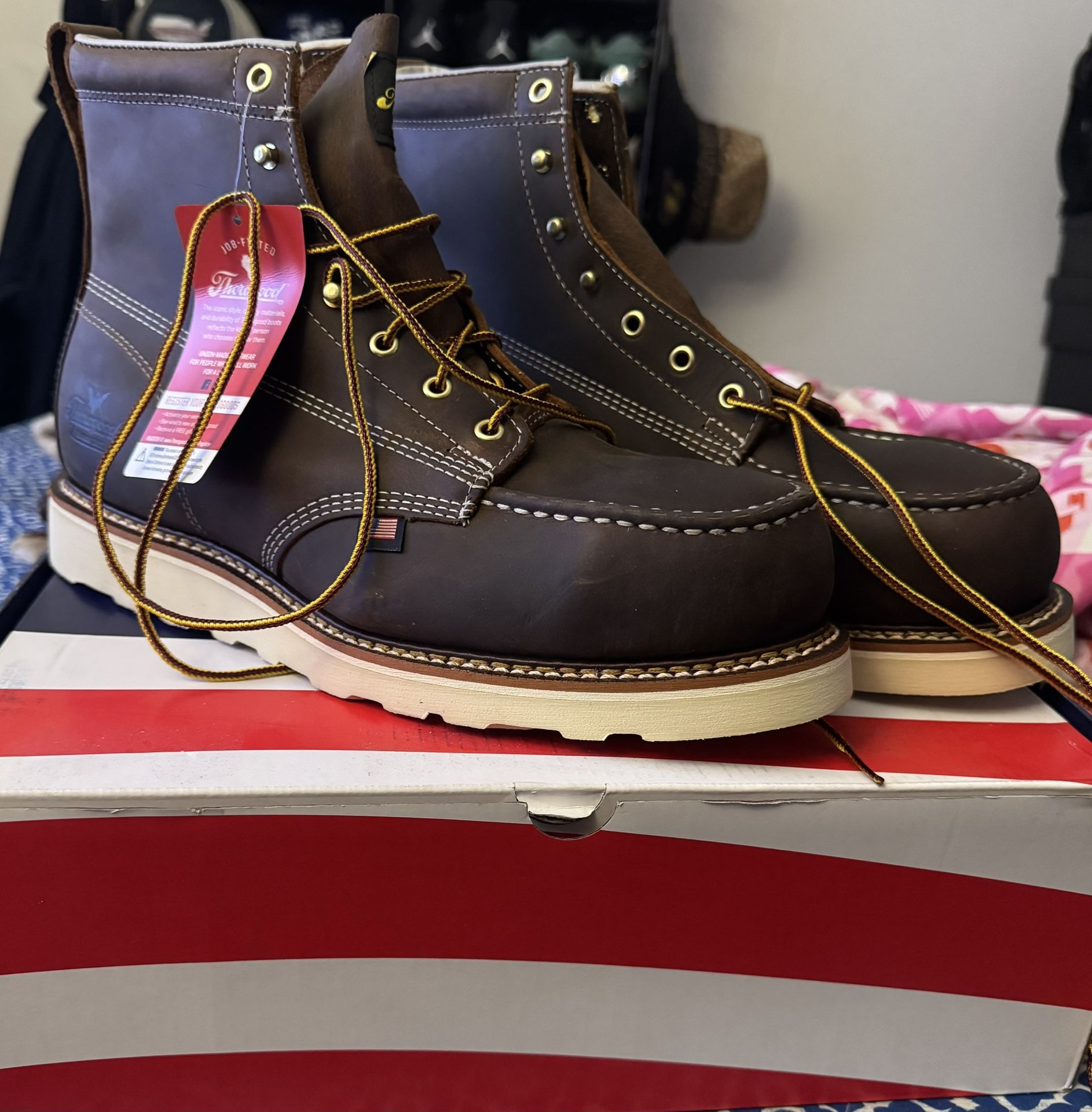 Brand new never worn, size 12, steel toe, leather made in the US price is negotiable