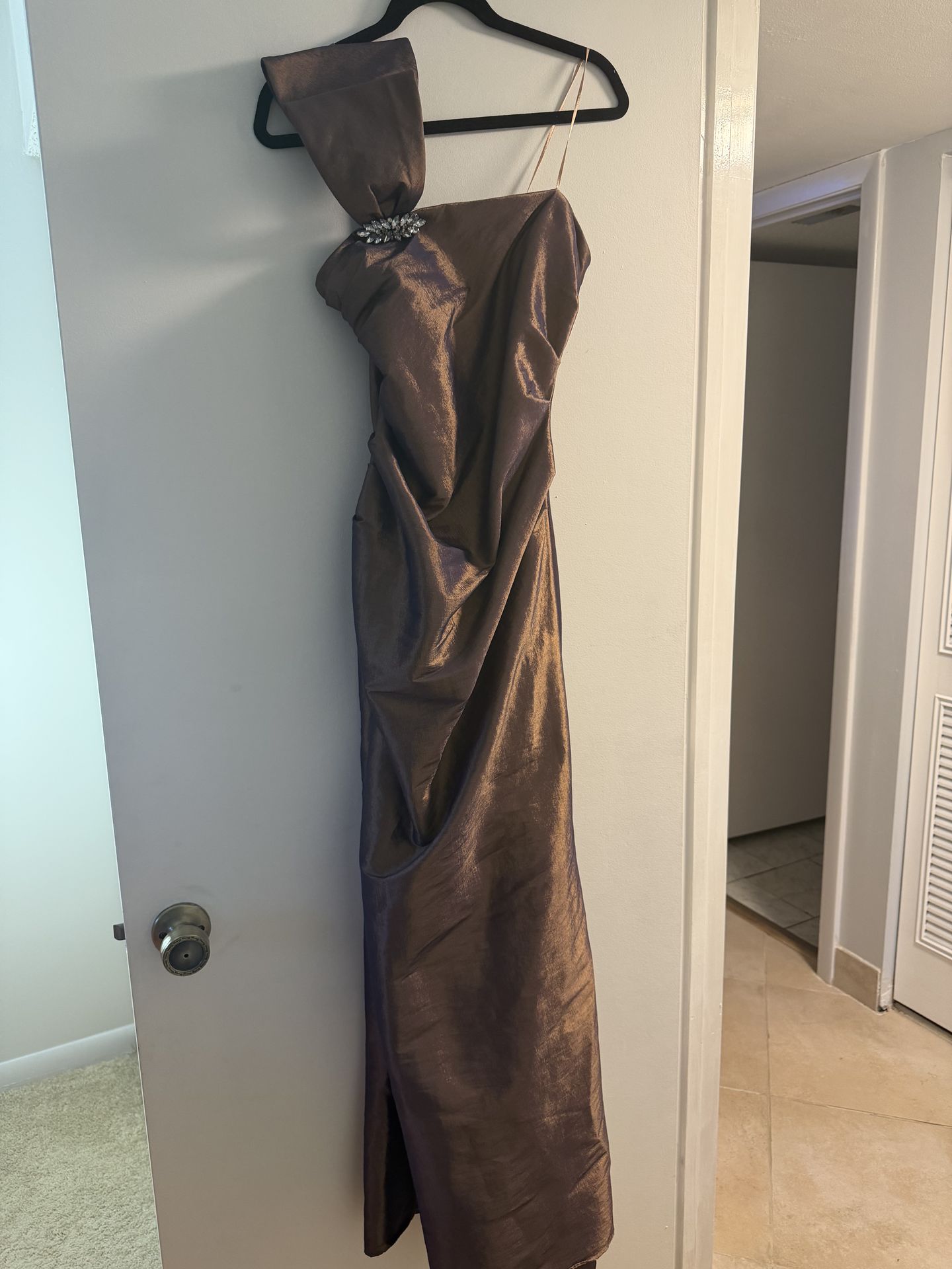 Gorgeous gown ! Shimmery with Gold and plum tones ! Worn twice cery comfortable. Just in time for Prom