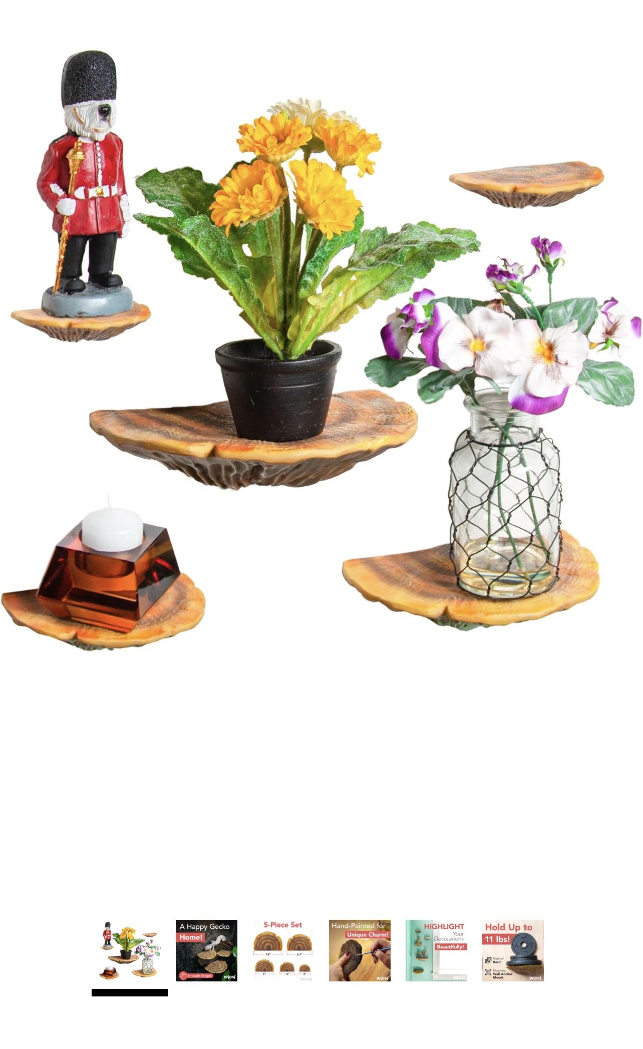 5-Piece Turkey Gill Mushroom Floating Shelves for Decorating Wall | Shelves for Room Wall | Perfect Floating Shelves for Room Decor | Leopard Gecko Tank Accessories