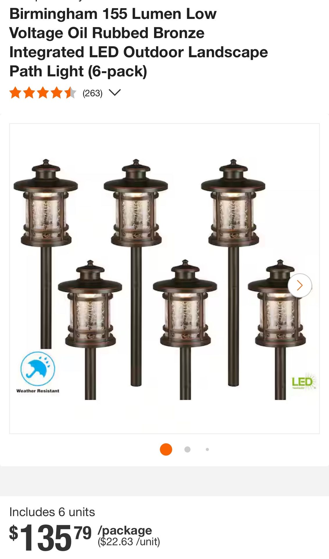 Birmingham 155 Lumen Low Voltage 6 Pack Landscape Path Lights