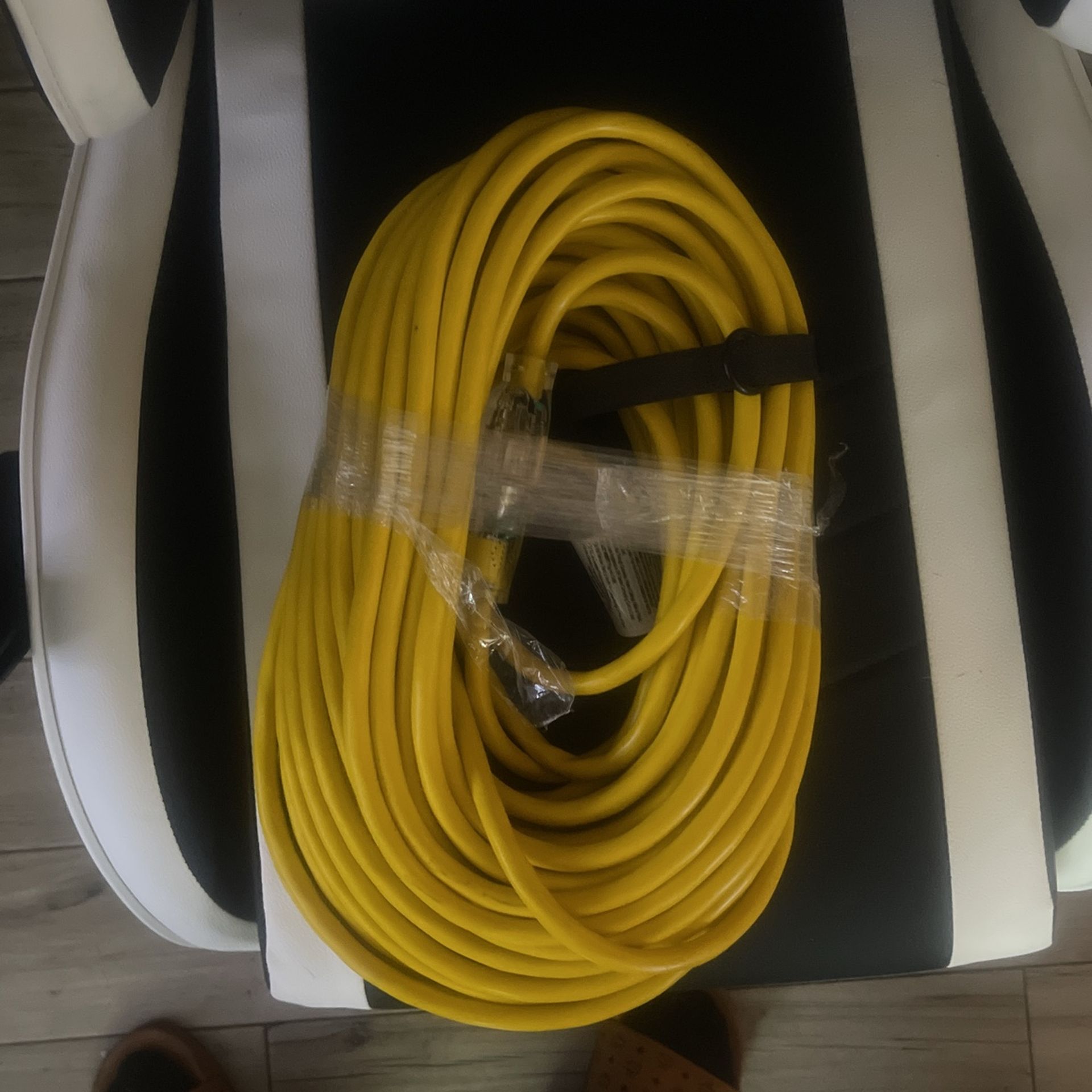 $60 A Brand New Unused suitable for Generators and heavy duty power tools . Payed over $100when I bought as I couldn’t find my other extension. Found my old one so this one just sat in my toolbox unused. This Hyper Tough Heavy-Duty Extension Cord is ideal to use when working on an industrial job site. With one grounded outlet, this 12-gauge extension cord features lighted end to show when the power is on. This extension cord is water resistant, flame retardant, and has a weather-resistant vinyl jacket for use both indoors and outdoors. This heavy-duty 100-foot extension cord can handle up to 15 amps, perfect for any of your construction needs. This extension cord comes with a visible yellow color that is easily recognizable while in use. This feature will enhance your safety by avoiding possible tripping over the cord or running over with your compressors, power and lawn tools. This also comes with a strap securely attached to wire so you can coil back easily and is also equipped with a ring that allows you to hang the cord in your tool shop to avoid accidental damage. Be sure to check out the entire Hyper Tough line for all of your home improvement or construction needs. Bring the electricity to your work site with the Hyper Tough Heavy-Duty Extension Cord. Built with three conductors, three-prong plug, one grounded outlet for safety purposes and an illuminated outlet when power on Durable strain relief to make sure that the plug is securely connected with the cable Made with sturdy vinyl outer covering that is tested to resist weather factors when used outdoors such as moisture and sunlight Designed to withstand extreme temperatures ranging from -40 to 140 degrees F
