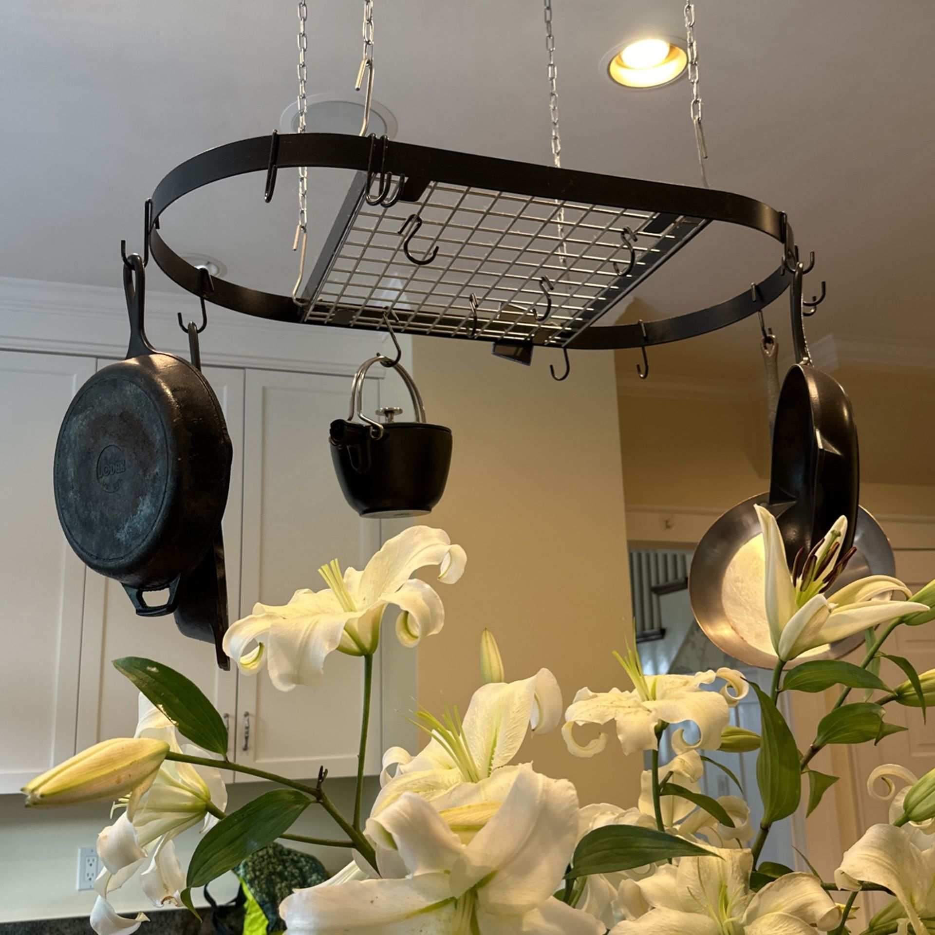 Black pot rack with pot hangers