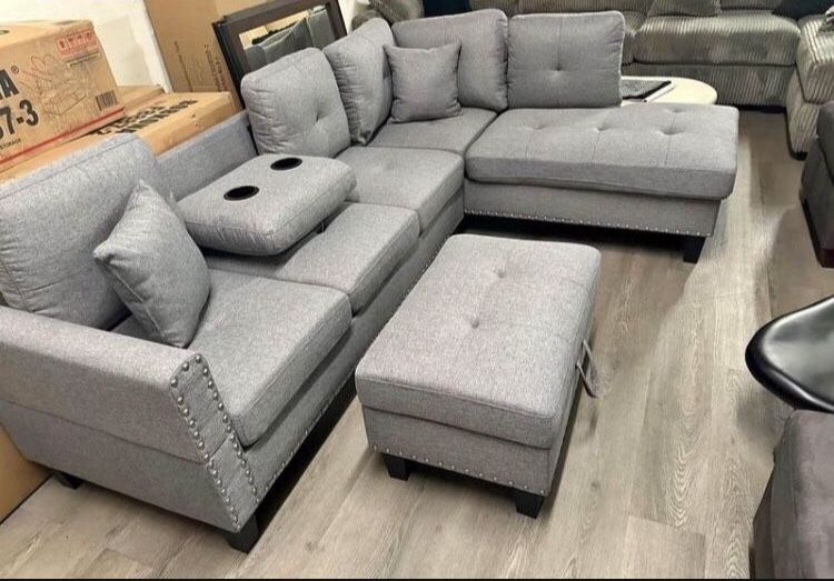 Gray Taupe Sectional Sofa With Ottoman Brand New