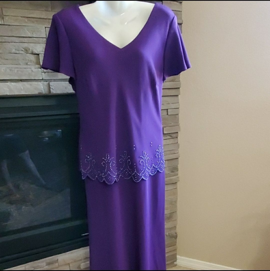 Beautiful purple mother of the bride dress. Dark purple with embellished beading. Size medium. Bought on another site, & really loved it. Bride went with another color. π AP to AP 21 inches, length from shoulder 52 inces. (No tags, came like that)