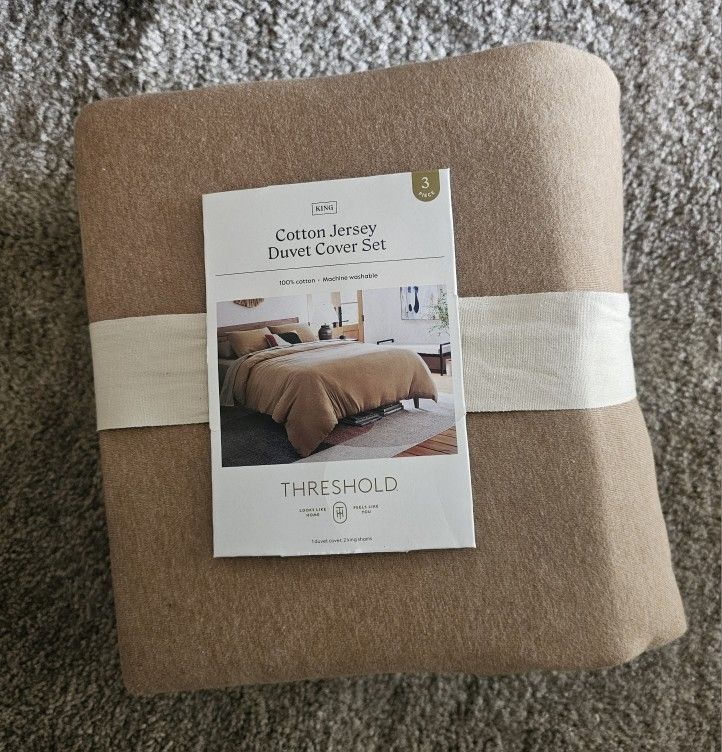 Brand new King Jersey Duvet and Sham Set Light Brown - Threshold'": Cotton Knitted Bedding, Zipper Closure, OEKO-TEX. Cash 💸 only No holds.