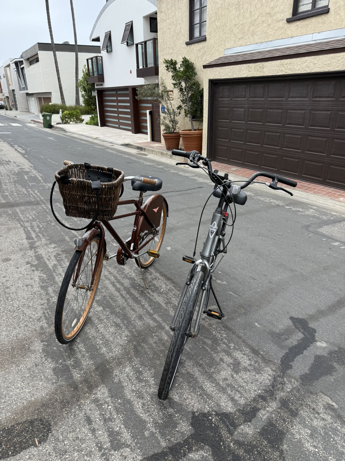 2 bikes for sale sold together or separately. $75 a piece or $100 sold together. Grey bike is an Electra Townie brand and brown bike is a Huel Premier brand. Bike pump included. Condition is good but just needs to be dusted off. Must pick up. No delivery.