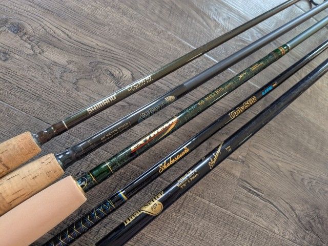 1PC Spinning Rods: Shimano Clarus CSS-62M 6’2” 6-12lb ⅛-1/2oz Medium Fast Taper $50 (excellent) SOLD - Bass Pro Shops Extreme 60 Million XPS6’8” EXT68MLS 4-10lb 1/16-3/8oz Medium Light Fast $100 (like new) - SOLD SOLD - St. Croix AVID/AS68MXF 6’8” 6-12lb 3/16-5/8oz Medium Extra Fast $150 (excellent) - SOLD Shakespeare Ugly Stik LITE PRO USLPSP 1170 1M 7’0” 6-12lb Medium $30 (excellent) Shakespeare HOOK SETTER HDS70-1M 7’0” Medium $30 (good)