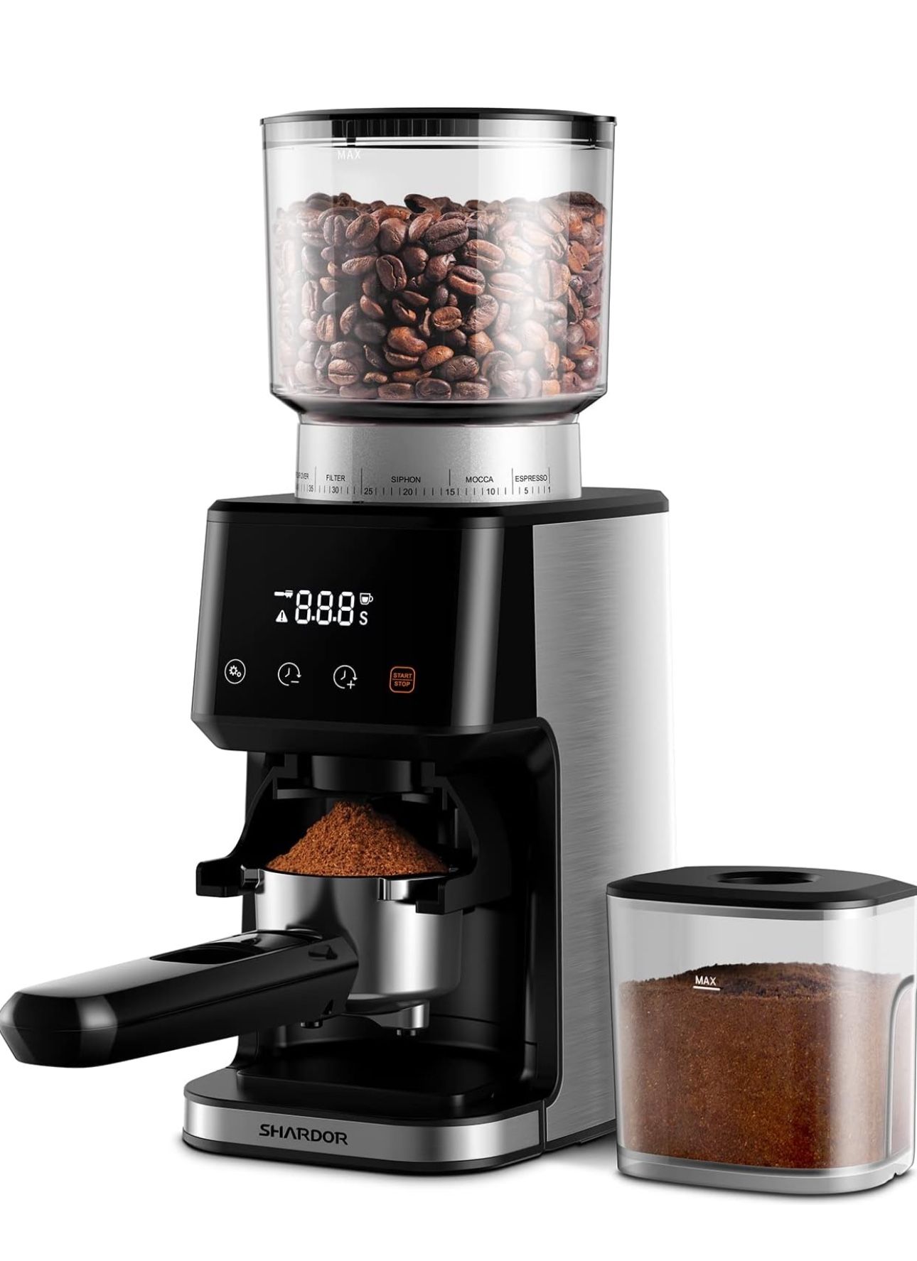 SHARDOR Conical Burr Espresso Coffee Grinder Electric with Precision Timer 2.0, Touchscreen Adjustable Burr Mill with 51 Precise Settings for Home Use, Anti-static, Stainless Steel Retail price - 99.99$