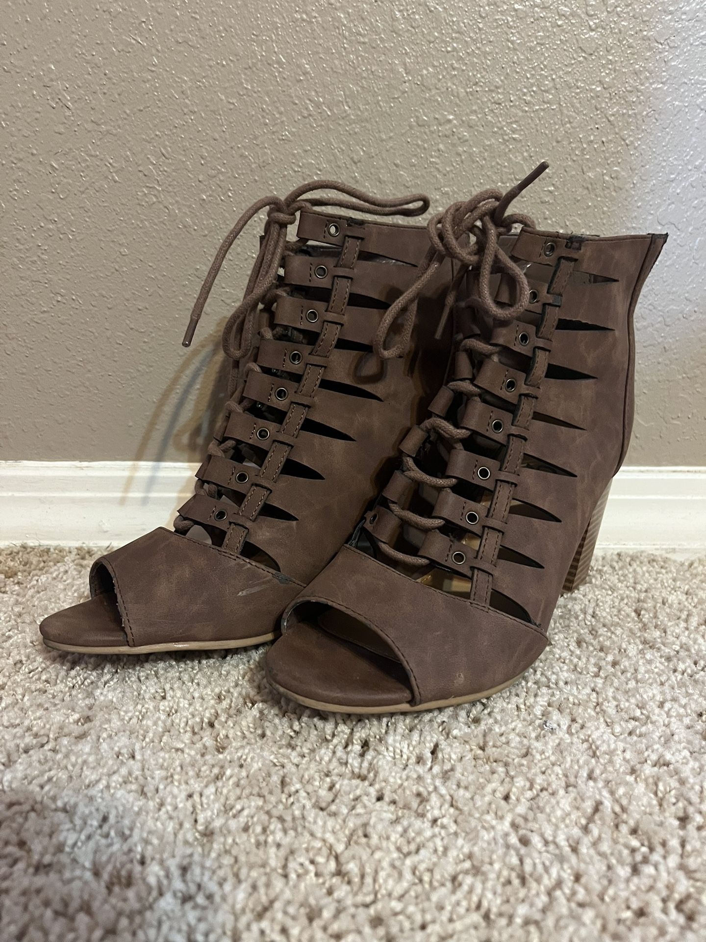 Brown lace up heels. Size 7.5. Rouge brand