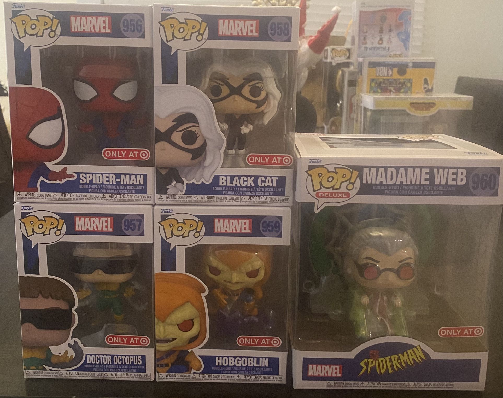 Spider-Man retro set 5 Funko Doctor oct Hobgoblin Spider-Man Black cat Madame web Sold as is