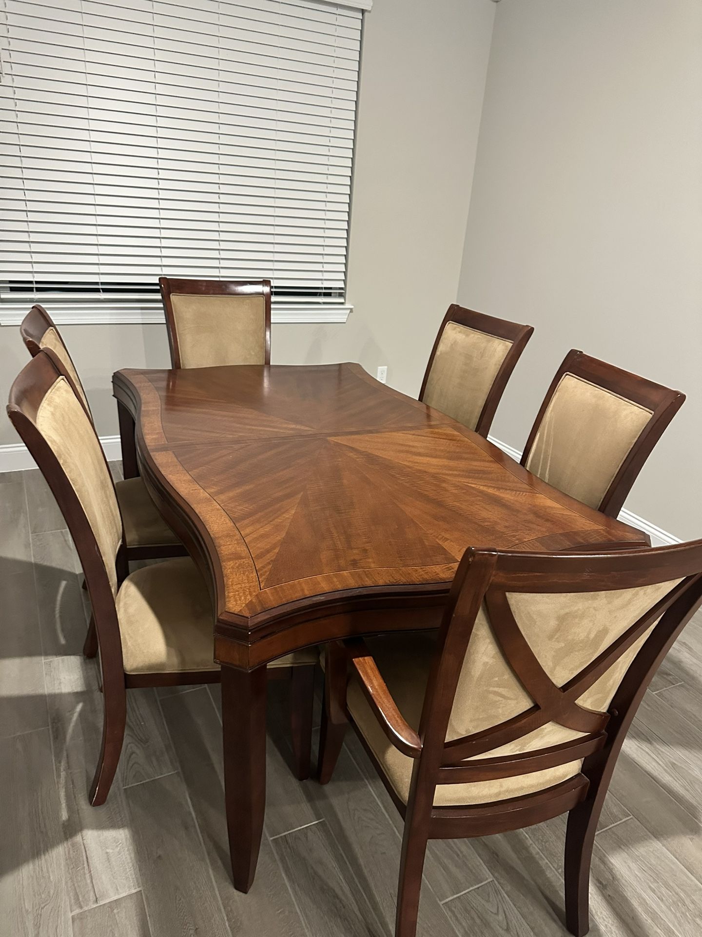 Brown Wood Dining Table With Set Of 6 Chairs