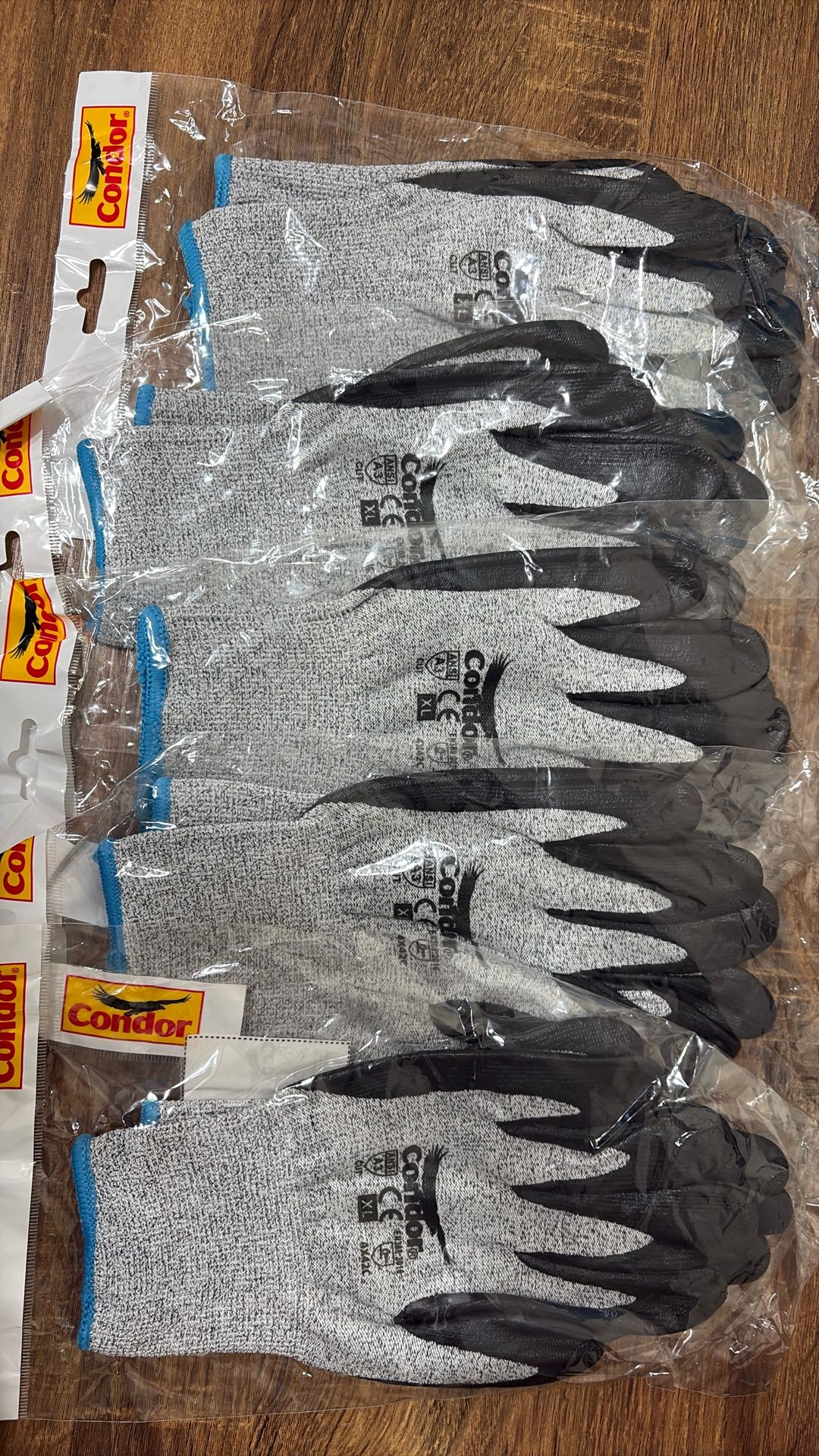 Condor Gloves XL New- 65% fabric 20% polyester 10% spandex 5% fiberglass 100% Nitrile 5$all 5 pairs