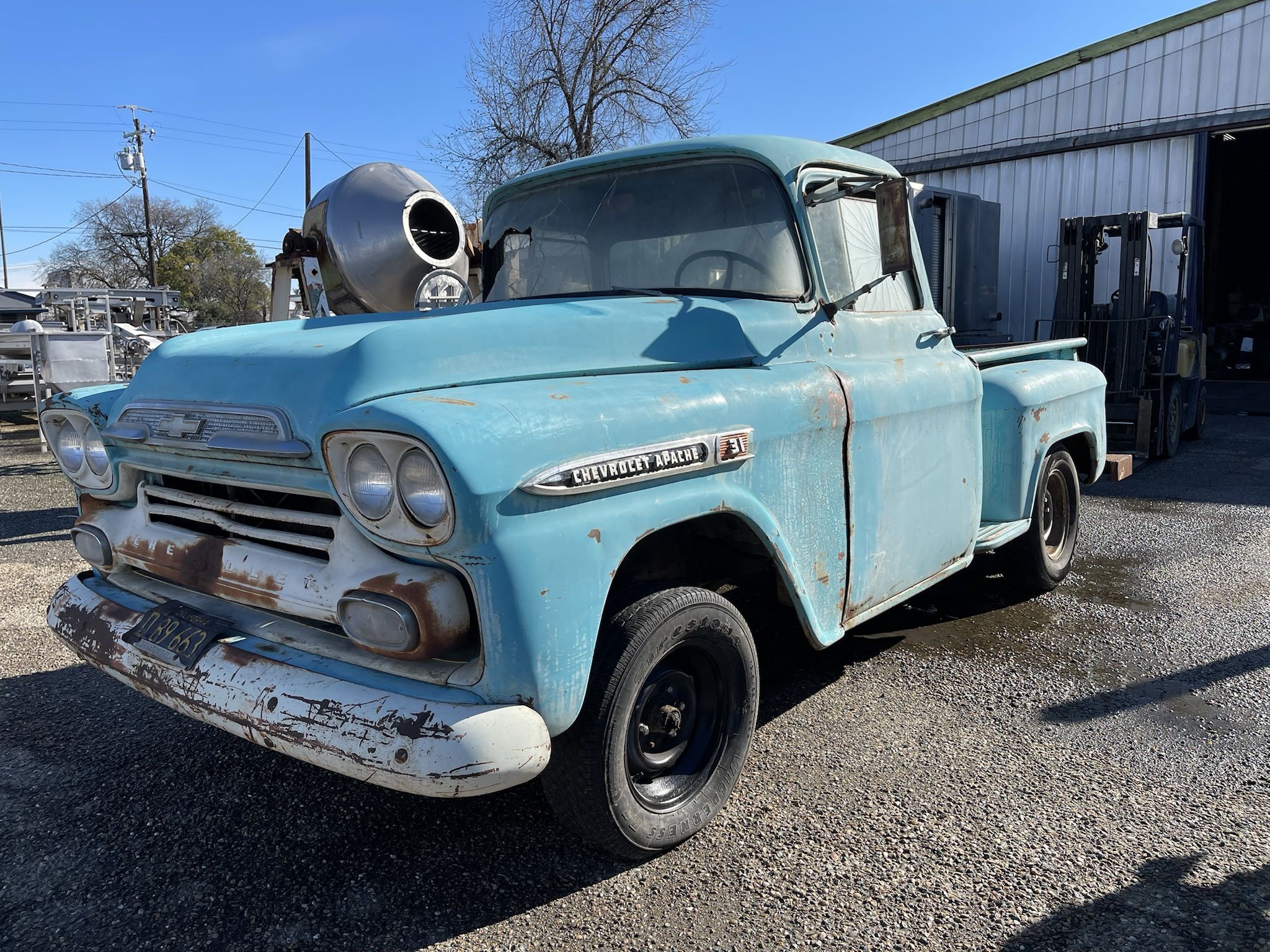 For sale 1959 Chevy Apache 3100, step side short bed, Big window truck. Doesn’t run or drive. Great Patina truck! Project of course. NO PINK out of system, will come with Bill of sale. CA truck. No trades. $7,500