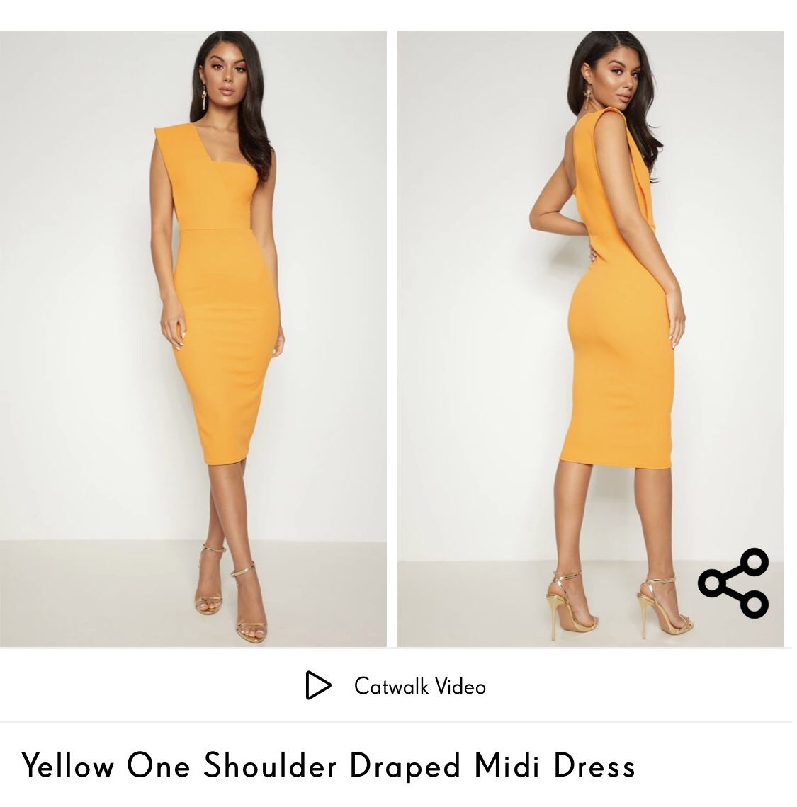 Yellow dress / one shoulder Never worn, tags still on Size is “8-10”however I’m normally a size 4-6 and this still fits a little snug.