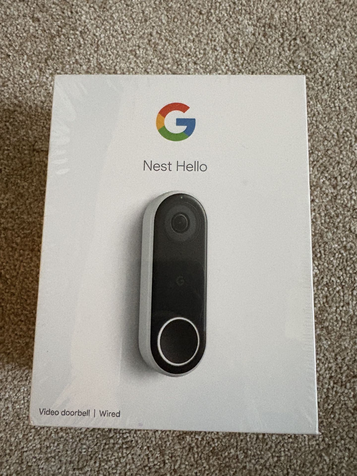 *Pickup Airport Area, Robinson Mall, Beaver Valley Mall* If reaching out please be ready to make arrangements to meet Google Nest Wired Door Bell Brand New in box never opened Retail Price was $229 • Full-Body View: 4:3 video designed to show people from head to toe • HDR Quality: HDR video captures sharp details in both bright and dark areas • Smart Alerts: Person, motion, and sound alerts to detect visitors • Familiar Faces: Recognizes family and friends, sending special alerts • Quick Responses: Includes prerecorded quick responses for convenience • 24/7 Streaming: Check in anytime with continuous streaming and 3-hour snapshot history • Night Vision: Delivers bright, crisp images even at night Price is OBO Any additional questions feel free to ask