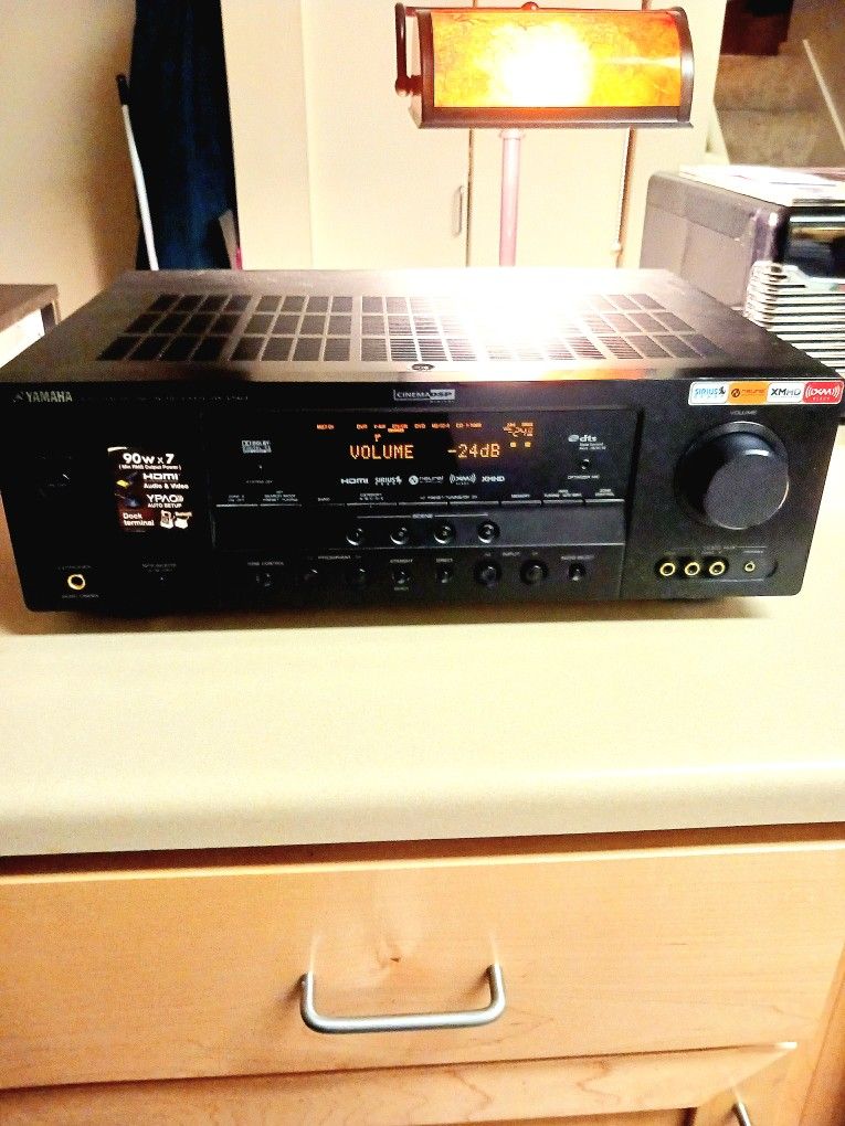 Yamaha natural sound AV receiver. Rx-v563 this is a Sirius ready radio with neutral surround and xmhd Surround Sound and XM ready capabilities with gold tip frontal video auxiliary ports and a portable with Optimizer microphone DTS digital surround with Dolby Digital EX with prologic 2 plus this is a 90-watt times 7 meaning this is about 600 W very nice with y p a o audio setup dock terminal Bluetooth. This has category button for different zones system off with the push of a button for safety reasons full audio select can be used with VCR DVD players high definition Bluetooth and high definition Blu-ray players a complete cinnamon OSP digital display Superior Sound and visual qualities are enhanced with this beautiful Yamaha receiver the cheapest one I can find on eBay was $365 plus shipping and tax which brings it well into the $500 range when completely calculated I am selling this absolutely brand new beautiful gem for $240 cash OBO serious inquiries can text for a local pickup address in the west Seattle area thank you :-)