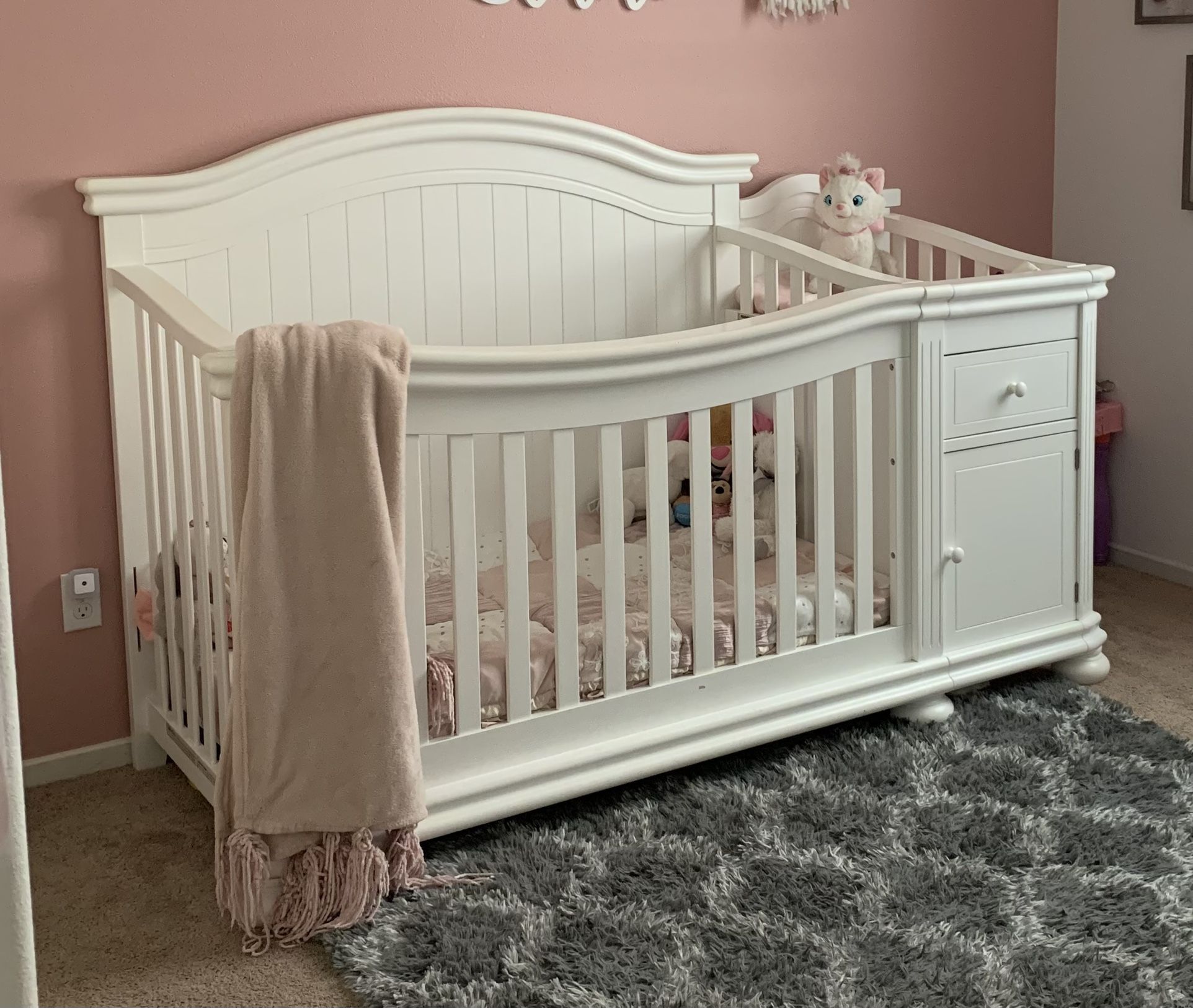 4-in-1 Convertible White Crib and Changer