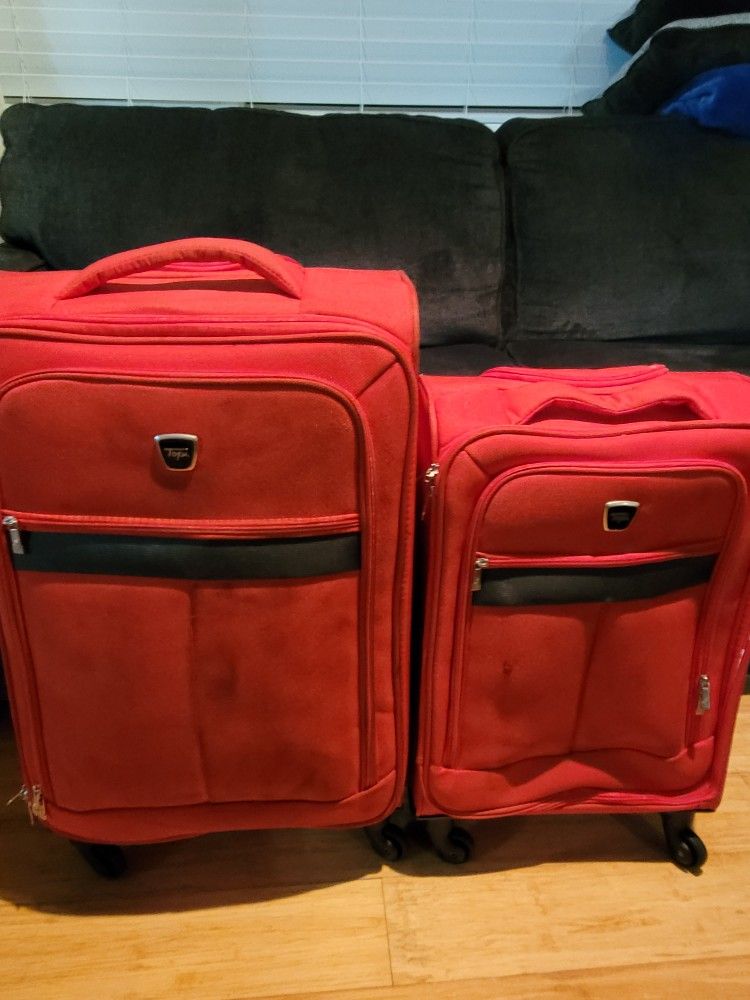 In good working condition. No tears. Used twice. A little staining on front of luggage from going through baggage claim. Swivel wheels - working Retractable handle- working All zippers working. Asking $75 for set. Medium sized Carry on