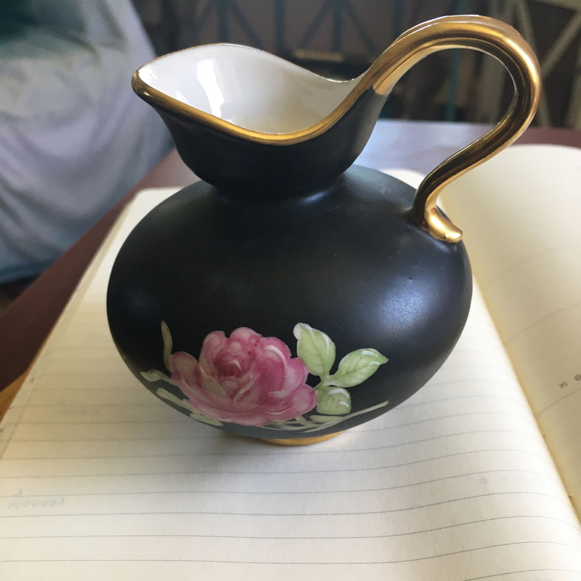 Porcelain Vase Black Beauty w/rose n gold design small 3”tallX4”wide made in Western Germany good condition Vintage