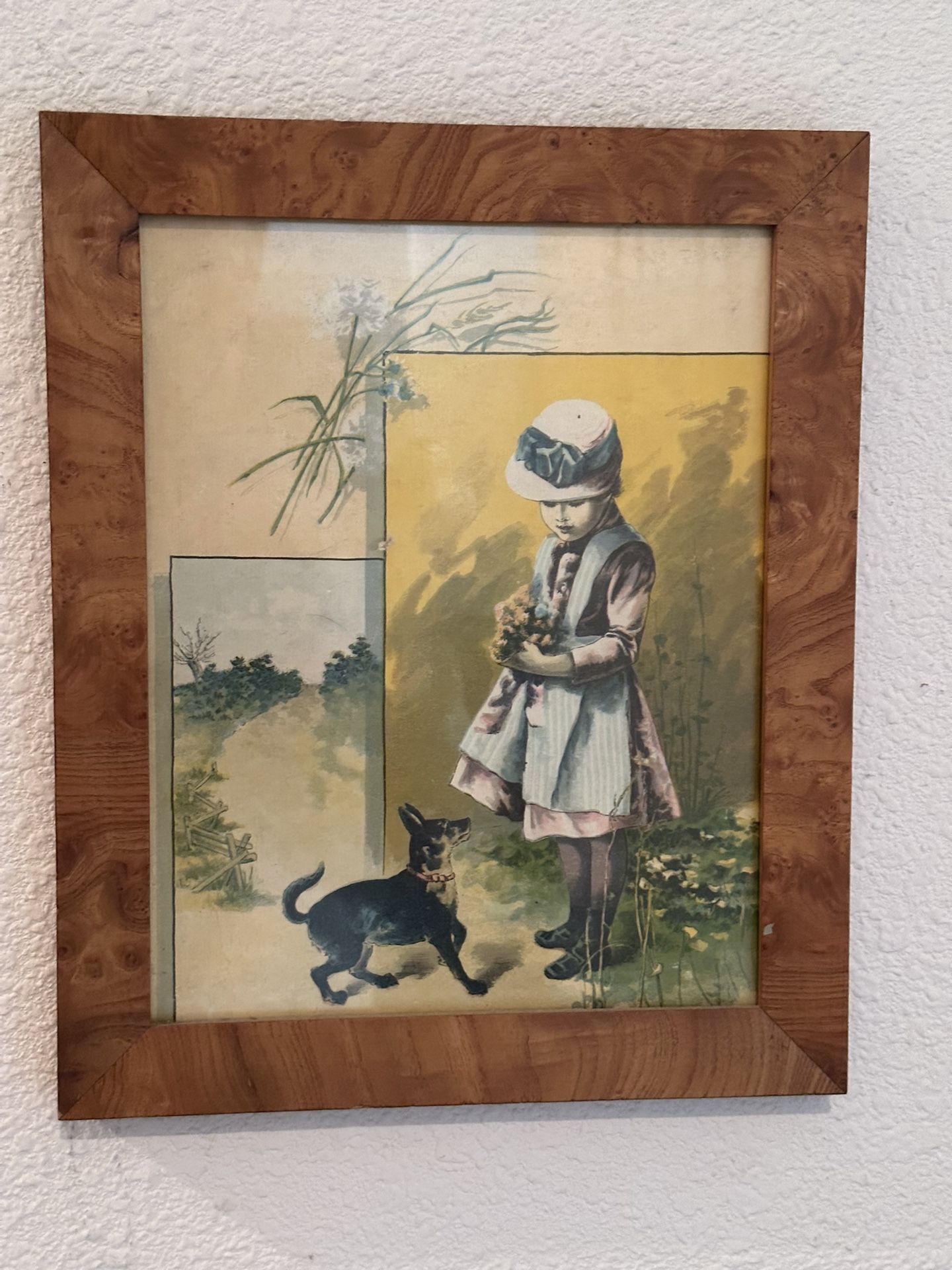 Vintage Picture Of A Girl With A Dog 11 X 13“