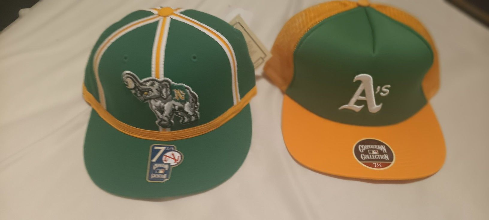 Oakland A's hats size on top.