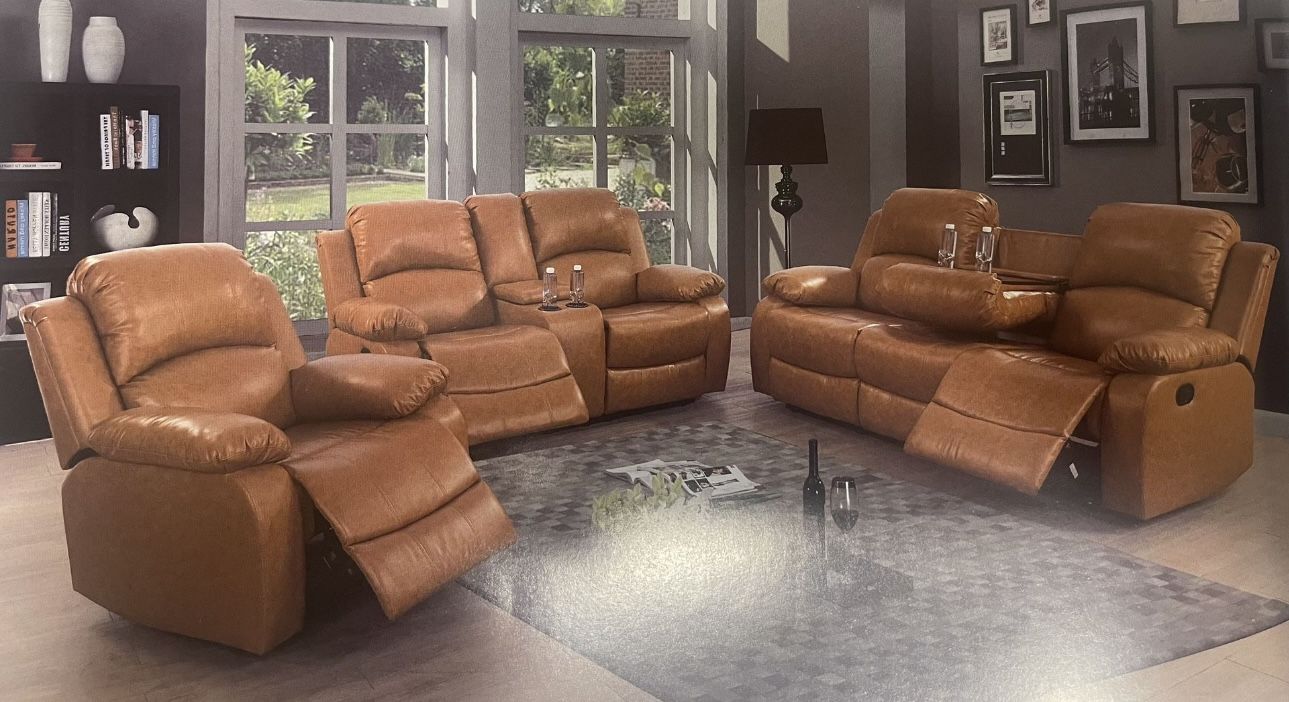 Brand new still in packaging this is display picture. Sofa and love seat and chair all included !! Delivery to all areas