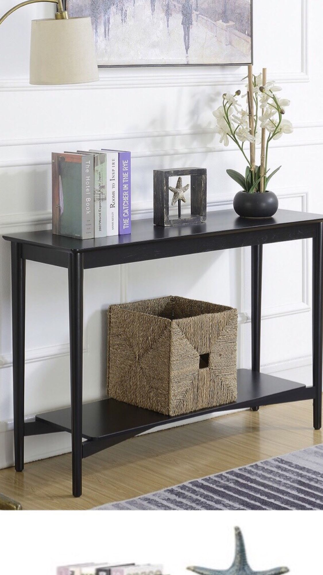 Brand New in Box. Retail for $199+taxes. Rich Black Finish. Crafted of engineered wood, solid wood, and wood veneer.Also have 1 matching End Table, Please ask for picture and price if you are interested in. Dimensions: 47.75W x 15.25D x 30.25H in.