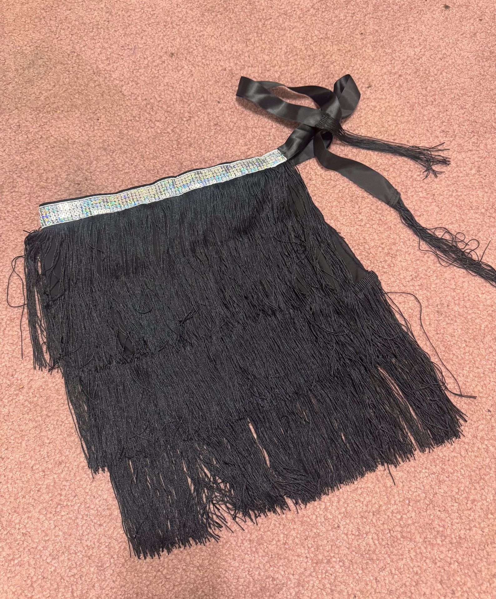 New one size black fringe short wrap tie skirt boho festival flapper sequin
