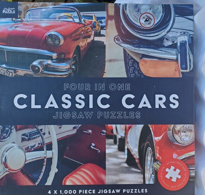Classic cars 4 different jigsaw puzzles. Box weighs 5lbs.