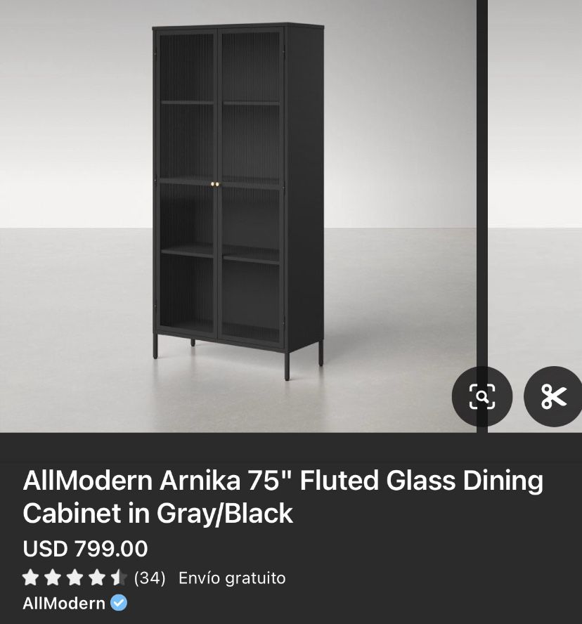 AllModern Arnika 75" Fluted Glass Dining Cabinet in Black