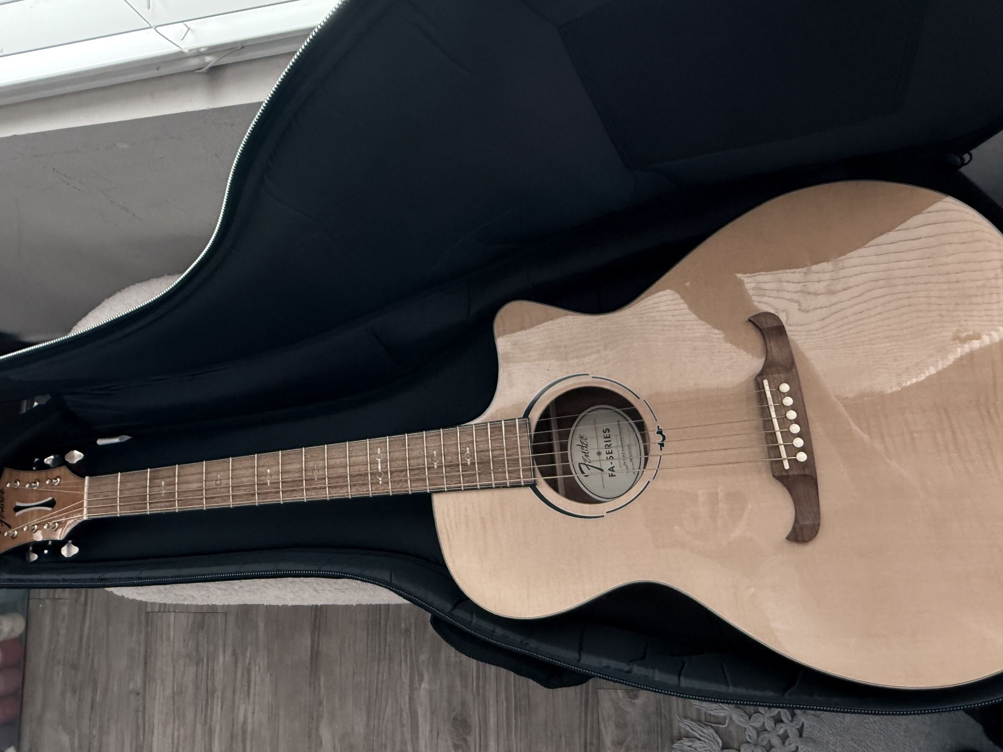 I’m selling for $250. Current retail value is $479. I’ll provide you a guitar case as well. This guitar is beautiful. I’ve only played about two times. This is unfortunately a bit large for my frame.