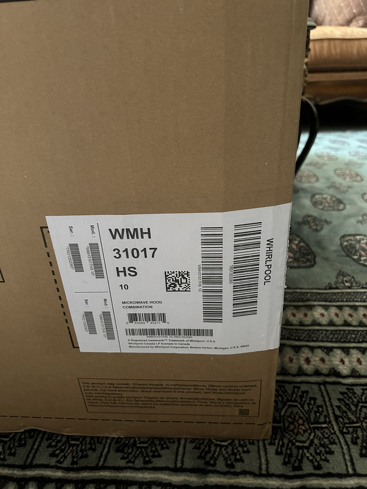 Whirlpool Microwave Model # WMH31017HS10 Brand New still in a box. The height will not fit my microwave slot I need 16.5” height and this one is 17.25” high. I paid $360+tax Look to get $180 that half of what I paid.
