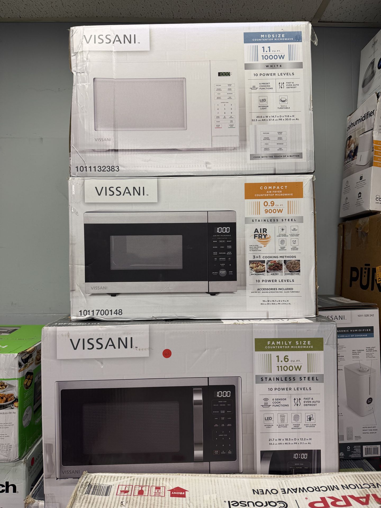 We have different sizes, different capacity 1.1 cu.ft. $69 0.9 cu. ft. $99 1.6 cu.ft. $79
