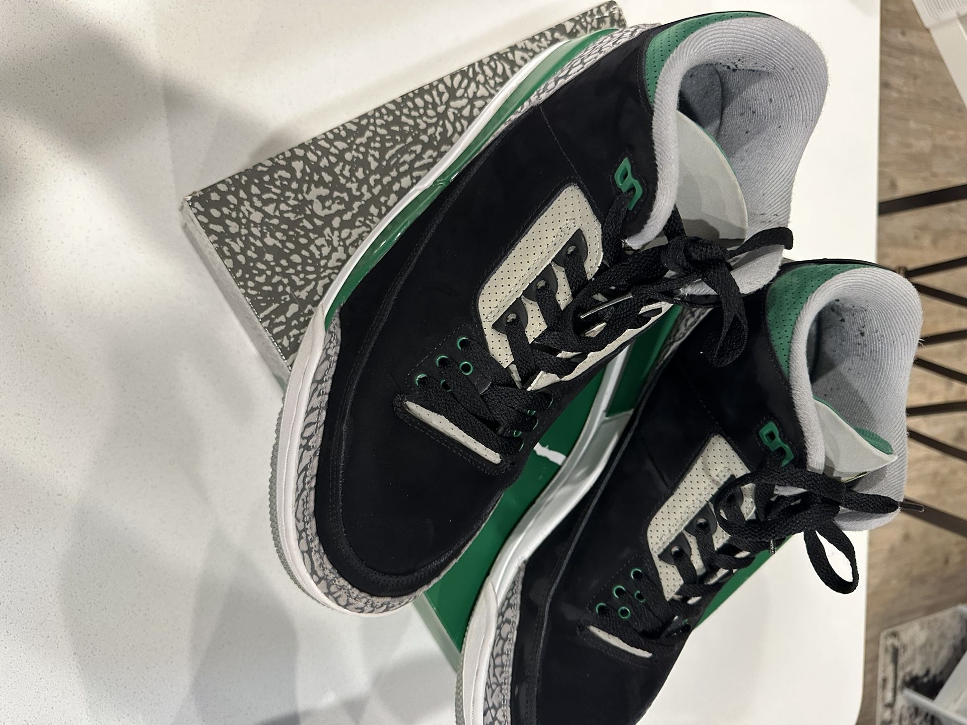 Jordan 3 Retro Pine Green $85 or best offer Size 11.5 Men Worn but in good condition Minor scuffs on the back Comes with original box Cash only