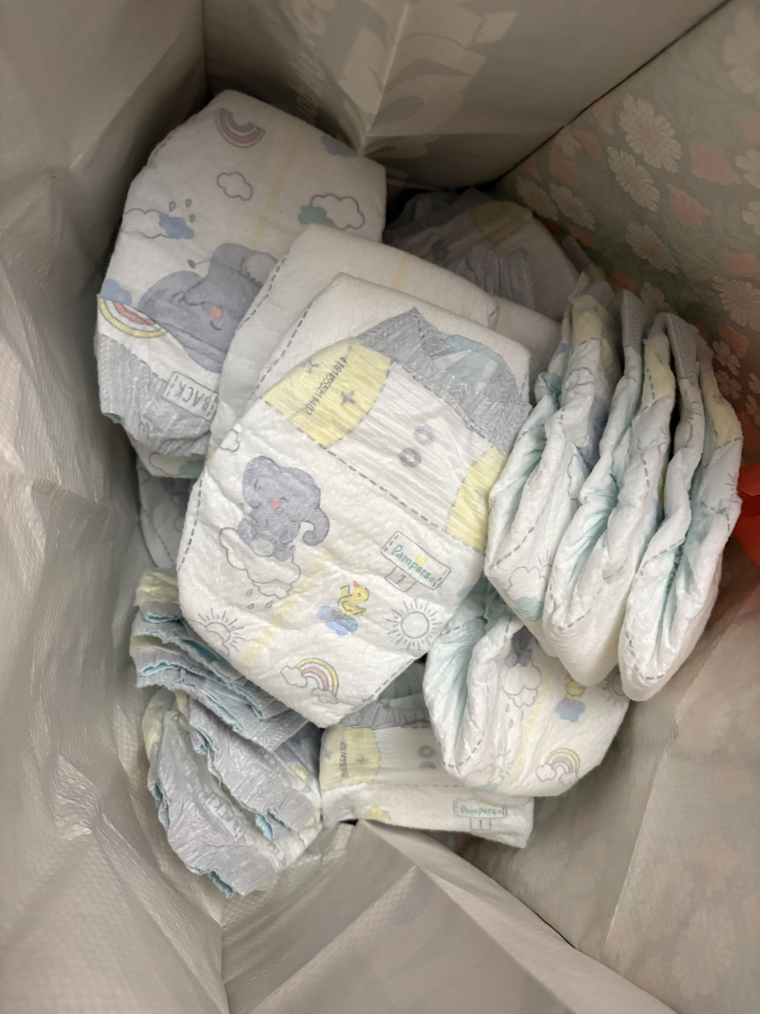Pampers size 1 44ct My toddler threw these out the pack I forgot I put them in a bag and my baby out grew them
