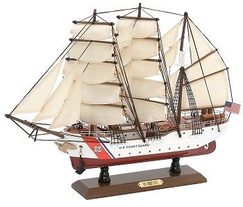 The uscg barque eagle measures 16"H x 19"L x 3.5"W. This ship is hand painted and made of wood. It's attached to a sturdy wood base and comes assembled. It will add a definite nautical touch to whatever room it is placed in and is a must have for those who appreciate high quality nautical decor. It makes a great gift, impressive decoration & will be admired by all those who love the sea.