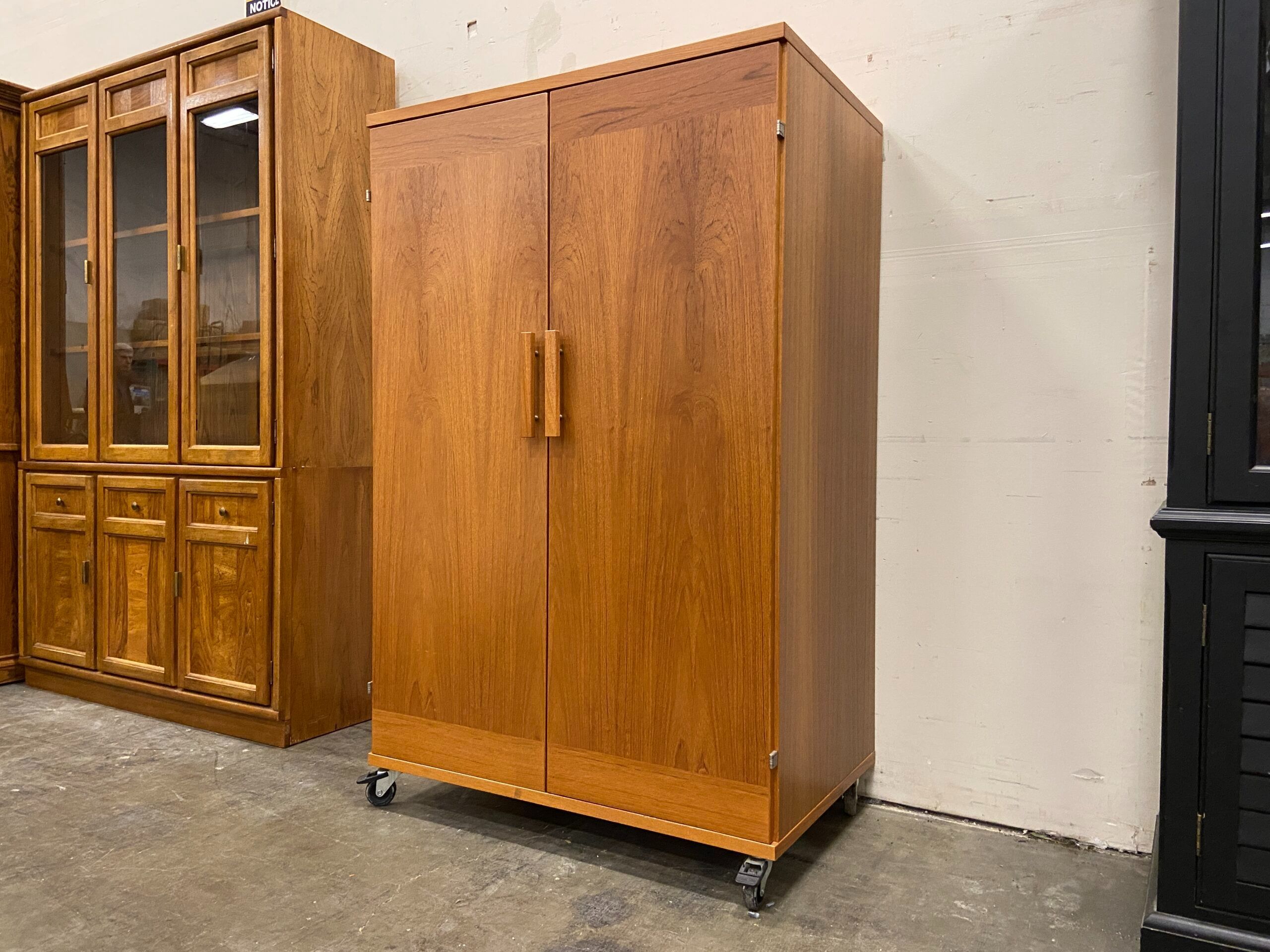 Danish Teak Armoire Desk with Murphy Table and Pullout Trays
