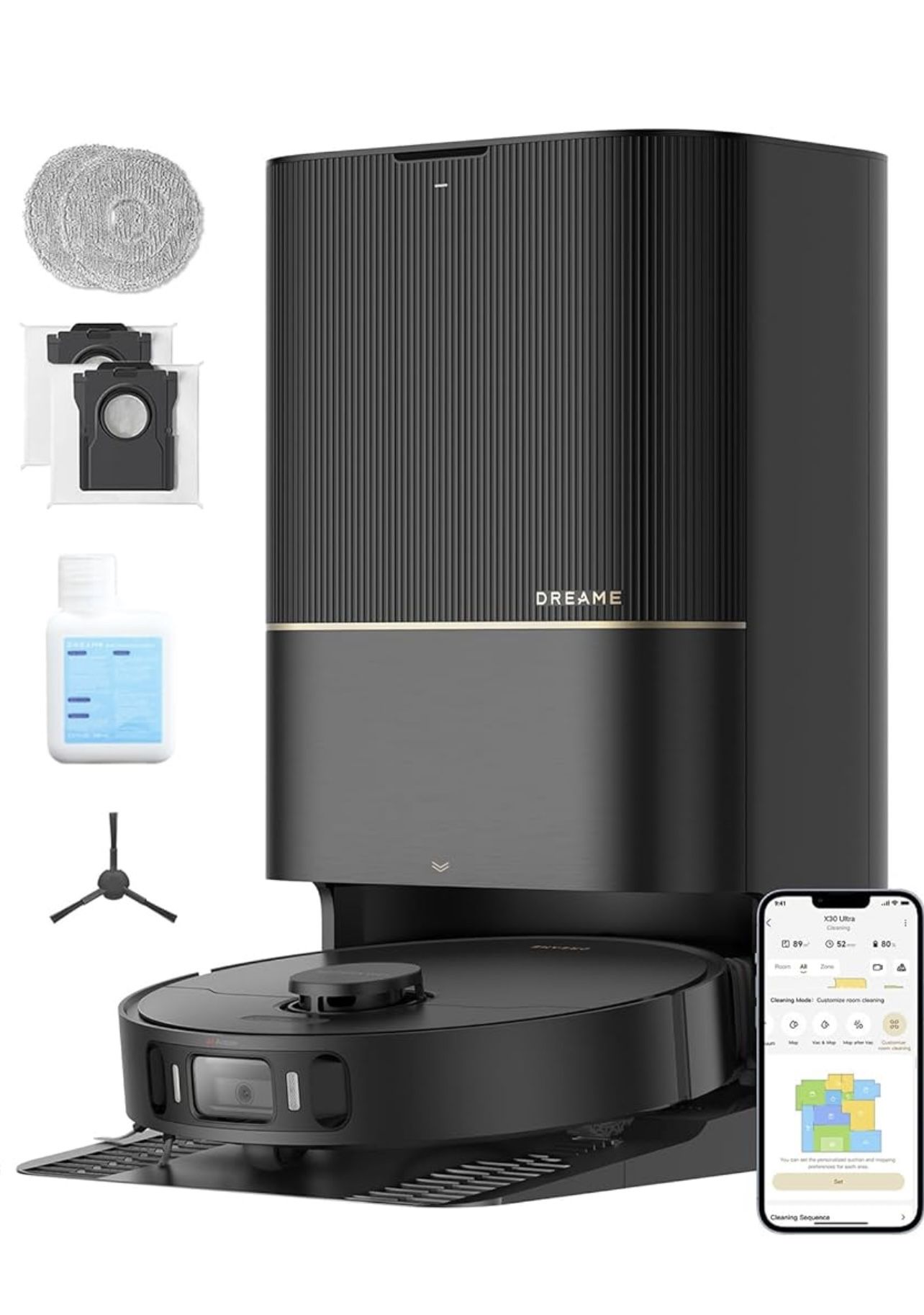 dreame X30 Ultra Robot Vacuum and Mop Combo, Extendable & Liftable Mop, 75Days Self-Emptying Robot Vacuum, 260Mins Runtime, 8,300 Pa Suction, 140°F Self-Cleaning & Auto-Drying Mops