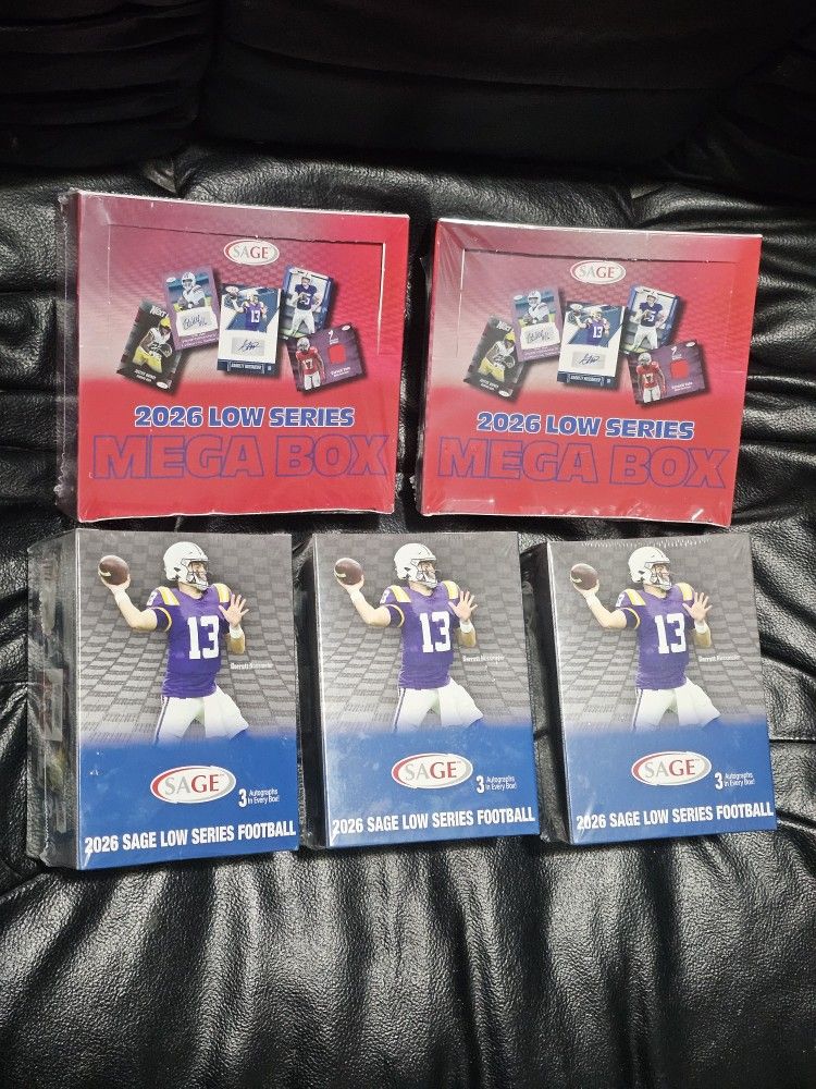 2026 SAGE Football Cards! 2 Mega & 3 Blaster Box! 17 Autograph & 2 Worn Swatch Card In This Lot! New Sealed! $120 for all