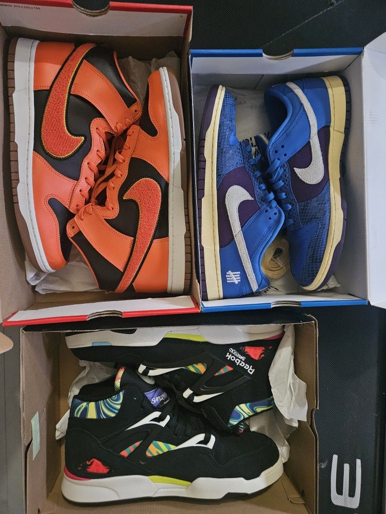 Three pairs of shoes size 12 One pair of Reebok pumps and two nike dunks $150