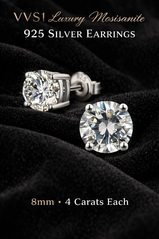 VVS1 8mm 4 carat Earrings Made With 925 Silver Diamond Tester VERIFIED Brand New