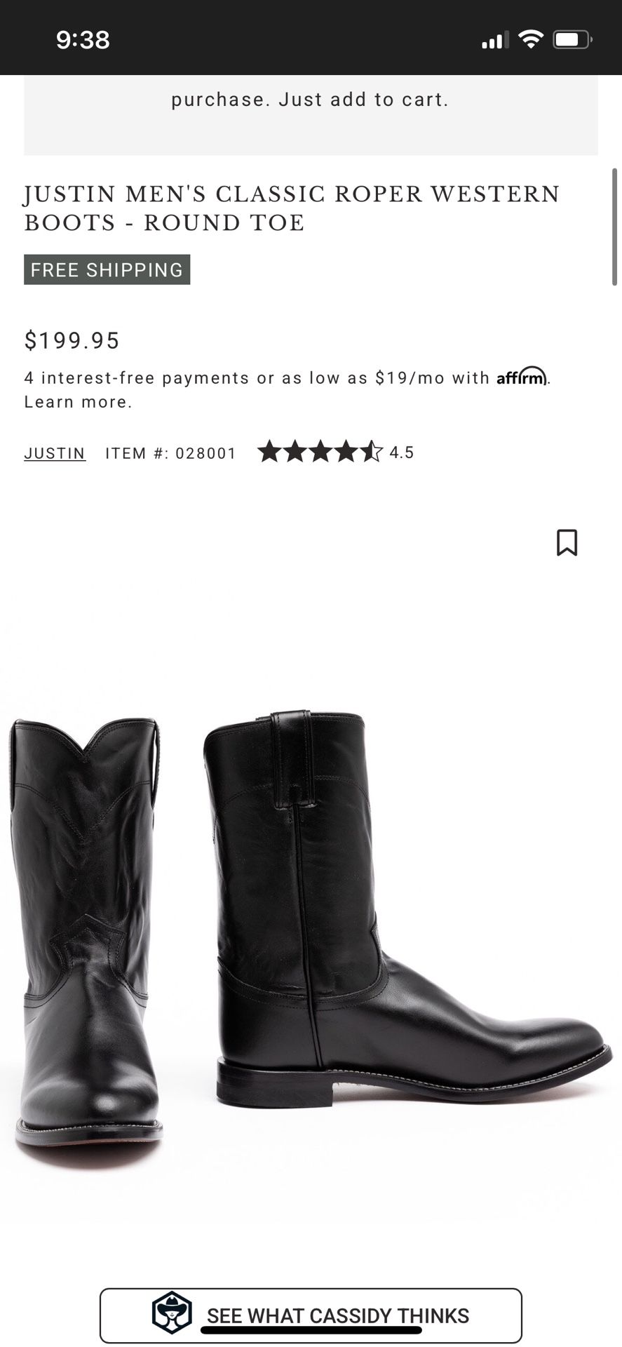 Men’s cowboy leather boots “Justin” size 11