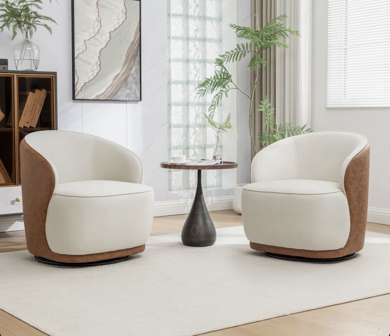 SEYNAR Modern Velvet and PU Leather 360 Degree Swivel Accent Chair Set of 2