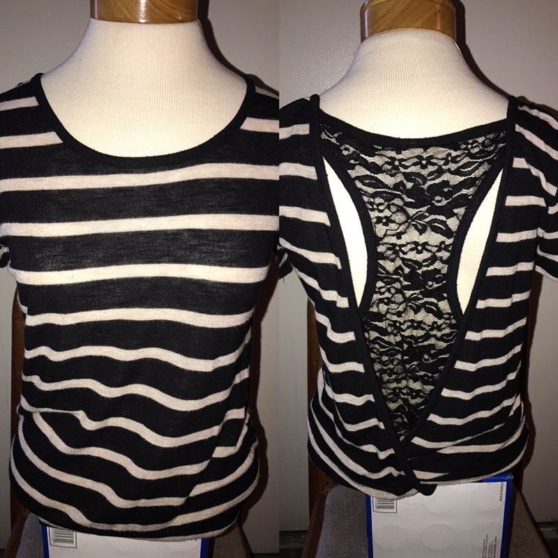 1. Black & Off-White: Wet Seal Size: Large (girls) 2. Pink: Julie's Closet Size: Medium 3. Blue: Hollister Side: Small