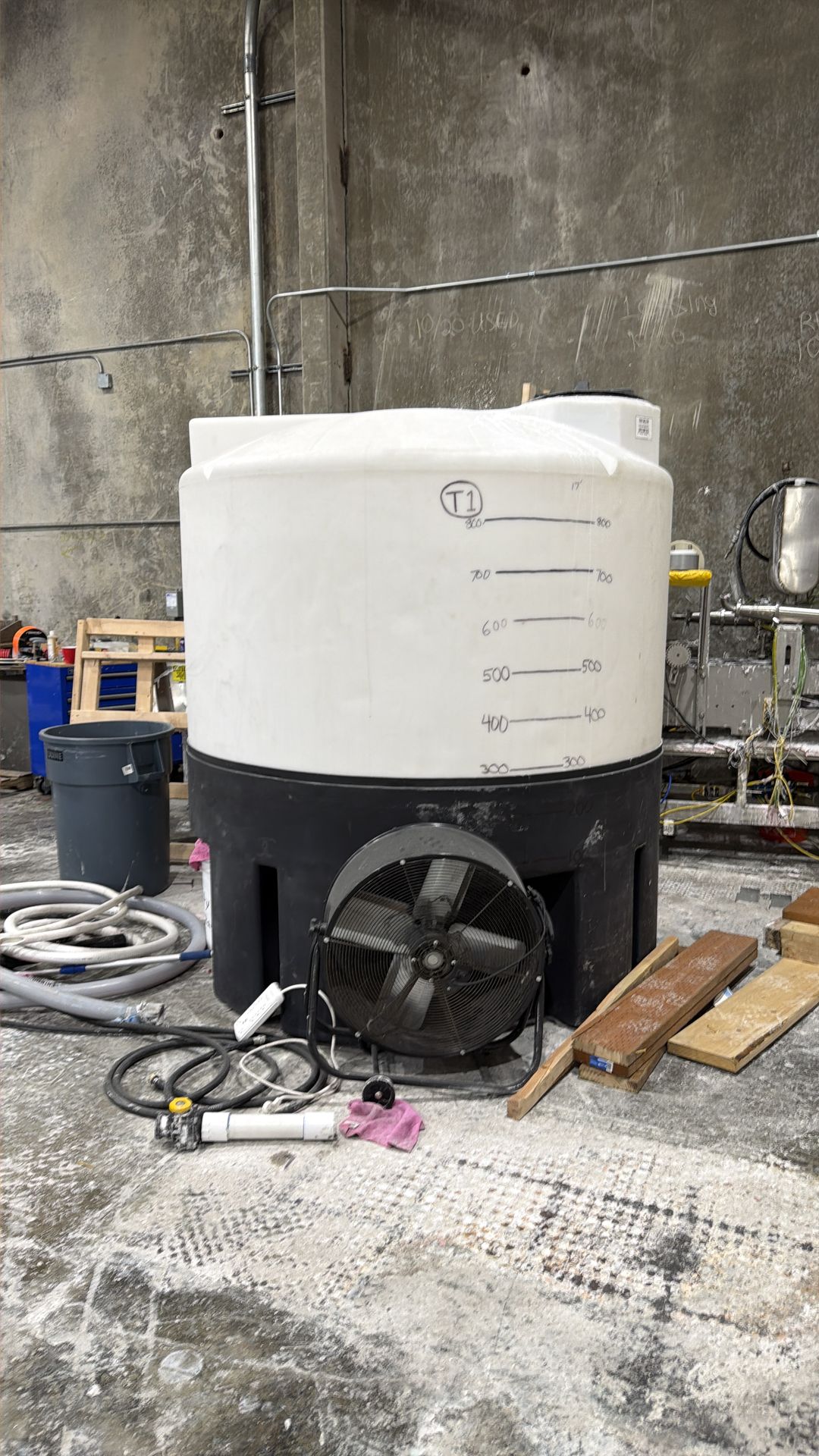 We have 2 for sale. Heavy-duty vertical polyethylene storage tank with approximately 1,050 gallon capacity. These sell new for around $2,700. This tank is used but structurally solid. There is a small hole cut in the top lid area. It can be patched or plastic welded depending on your intended use. Graduated gallon markings are visible on the side. Thick wall construction with a black molded base and built-in legs for stability. Approximate specs: Capacity: 1,050 gallons Material: Polyethylene Style: Vertical storage tank Color: Natural white body with black base Top access opening plus additional small cut hole No visible cracks in the main body Great for water storage, rainwater collection, agricultural use, non-potable liquid storage, or as a mixing tank with proper fittings. Located in Seattle. Buyer must bring trailer and help to load. This is large and heavy. Message with any questions. We have motors and a mixing paddle we can sell with them if you have anything you need to mix.