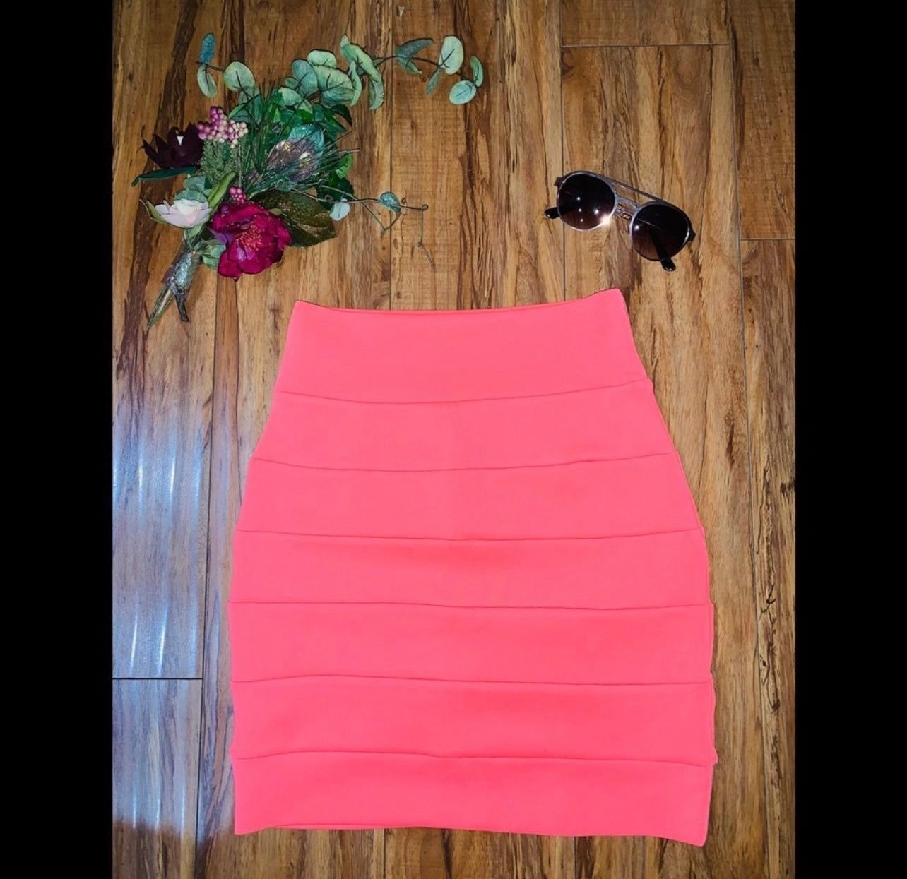 NWOT Beautiful neon coral Bodycon pencil skirt. Very cute & perfect for summer or night out. Perfect with crop top/ moto jacket or long sleeve & some cute boots. Dressed up with blouse & some sassy heels. Flirty, semi fitted, nice shape / pattern to it/ Bodycon skirt Color neon coral Size small / stretch Waist 14/15x2” length 19” 95%polyester 5% spandex Discounted shipping applied Offers welcomed & accepted :) Model picture is similar to actual skirt, length will depend on your height on how it will look on
