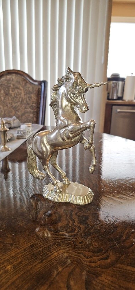 Vintage Unicorn Solid Brass Heavy 9.5" Mystical Statue Figurine / Decorative / Decor / Rare / Collectible / Antique / MCM / Hollywood Recency