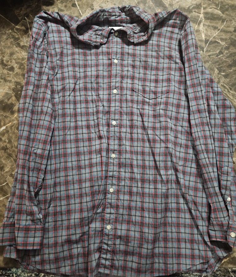 Sonoma Men's LS Button Down Shirt Gray Blue Red Plaid Cotton Poly Spandex 2xb